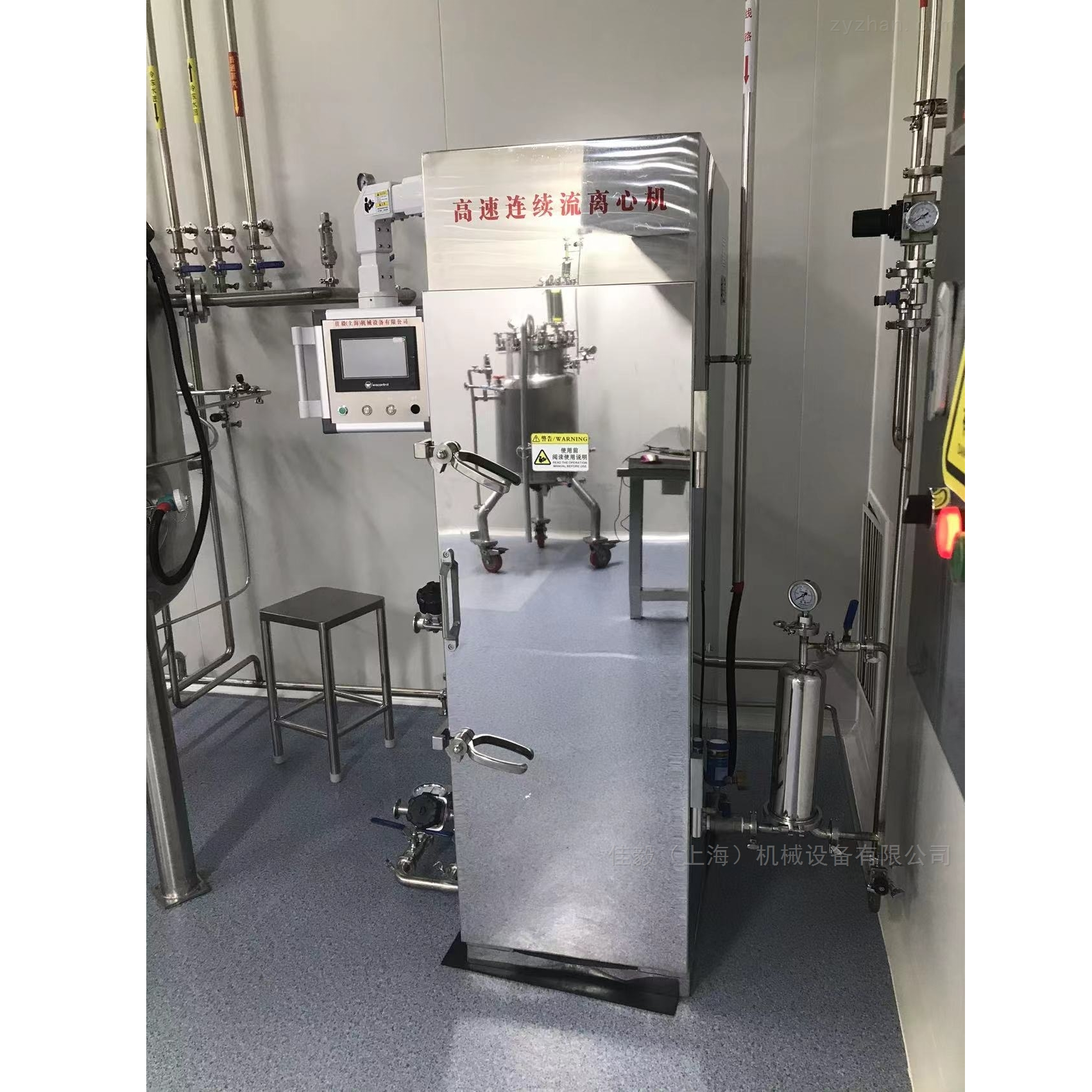 箱式高速離心機:是我公司自主研發的新型號,設備采用微電腦控制(轉速可從0--16000 r/min調)、下阻尼采用國內發明技術無需油脂潤滑,解決油脂污染物料的重要難題。GQ145L高速管式離心機的機身、轉鼓等全部使用不銹鋼制作。美觀簡潔,清洗方便,符合GMP的要求。其特點為轉速較高,固體裝載量大,生產能力高達300-800kg/小時,主要適用于工業生產當中連續性進料澄清的分離操作,沉積在轉鼓內的固相沉渣以人工鏟除。 高速連續流離機:分離因數高達18200xg,分離zui小顆粒為0.5微米,適用于乳濁液的分離和高速度懸浮液的澄清。在澄清懸浮液時,為使卸渣不至過于頻繁,懸浮液的固相含量不超過1%。 GQ145L管式高速離心機,廣泛應用在食品級要求高的生物制藥、疫苗制備、中藥制劑、動植物蛋白果膠提取、植物生物的澄清,保健食品、飲料等行業工業生產中,亦作為抗生素、酵母的回收等工藝過程的設備。